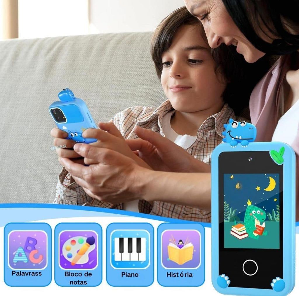 Ofereça ao seu pequeno uma experiência de diversão e aprendizagem com o Telefone Celular Infantil Educativo KidTech. Surpreenda com esse celular divertido, seguro e cheio de aprendizado!  Com design colorido e capas fofas de unicórnio e dinossauro, ele é ideal para estimular a imaginação e o aprendizado das crianças.
